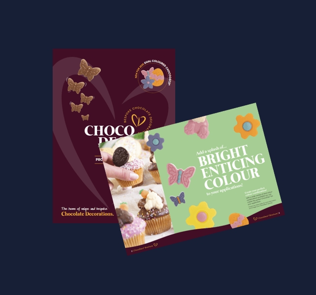 The brochure showcases OV’s ChocoDecs range of premium chocolate decorations made in St Ives, Cornwall. It highlights versatile shapes for every season, including bespoke options, all crafted with Rainforest Alliance certified chocolate to add creativity and quality to any confectionery or dessert application.