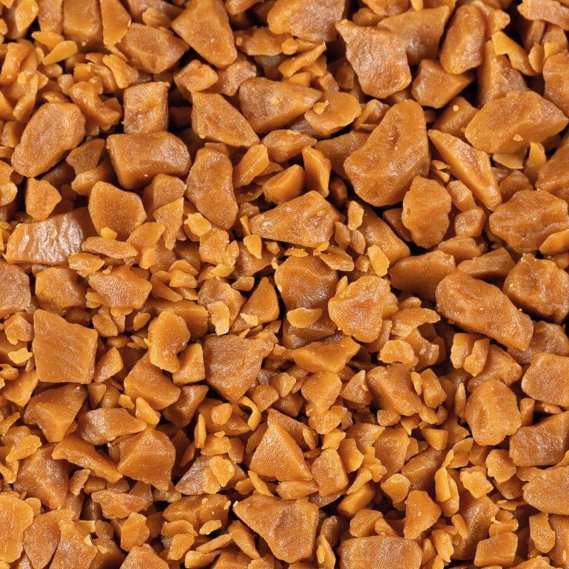 Golden brown toffee pieces with toffee flavour