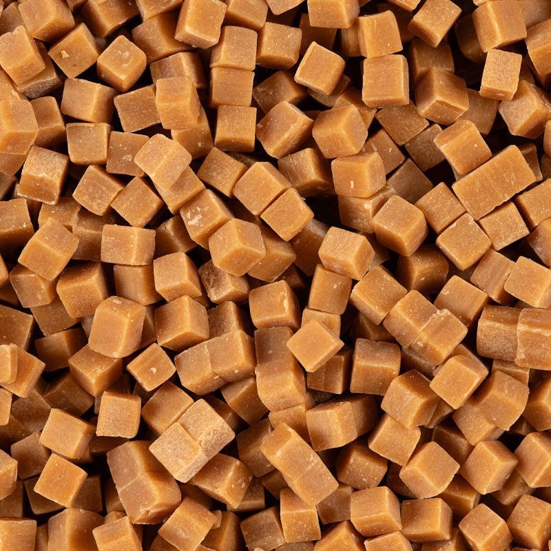 Salted caramel flavoured fudge cubes 5-7mm