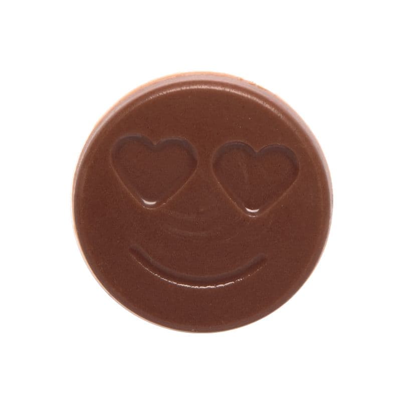 ChocoDecs® solid chocolate decoration emoji heart-eyes face, made with Rainforest Alliance Certified™ cocoa. Please note that the MOQ can vary for market to market, please contact your local OV representative for details