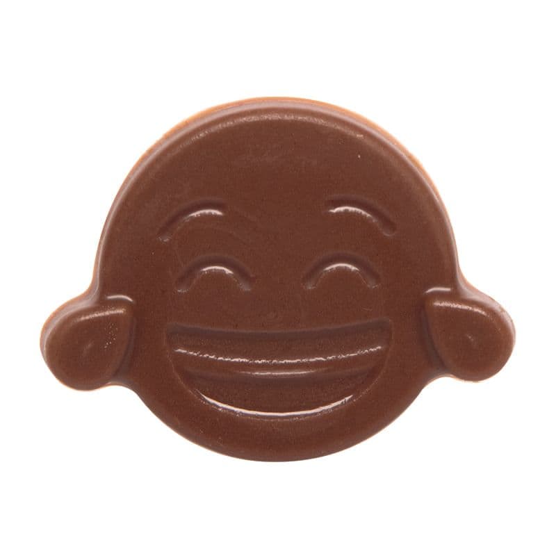 ChocoDecs® solid chocolate decoration emoji laughing face, made with Rainforest Alliance Certified™ cocoa